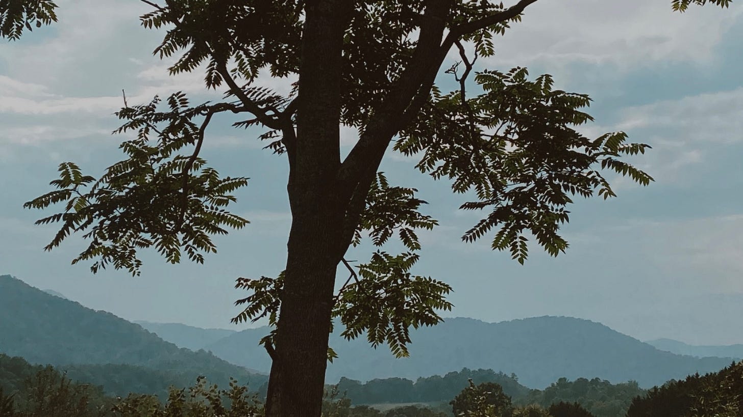 let the fog of pre-dawn blanket the mountains and treetops and horizon